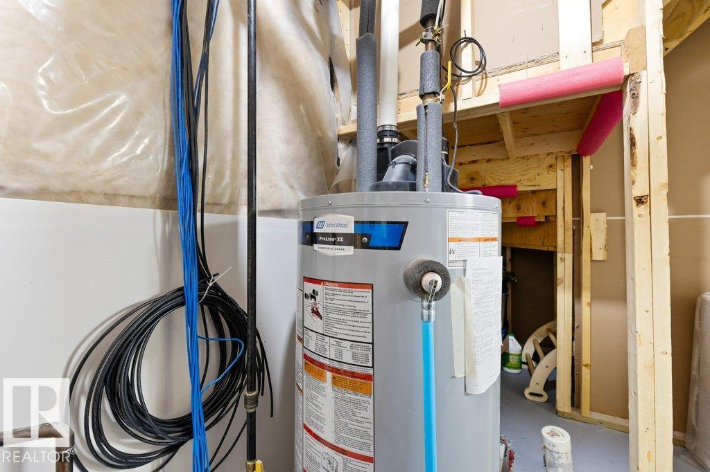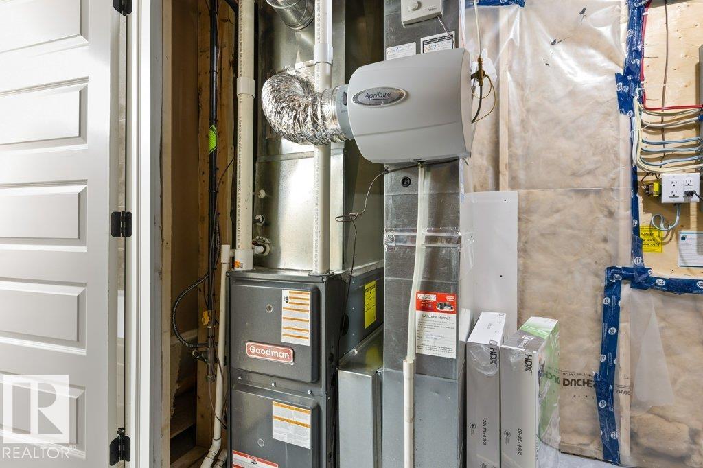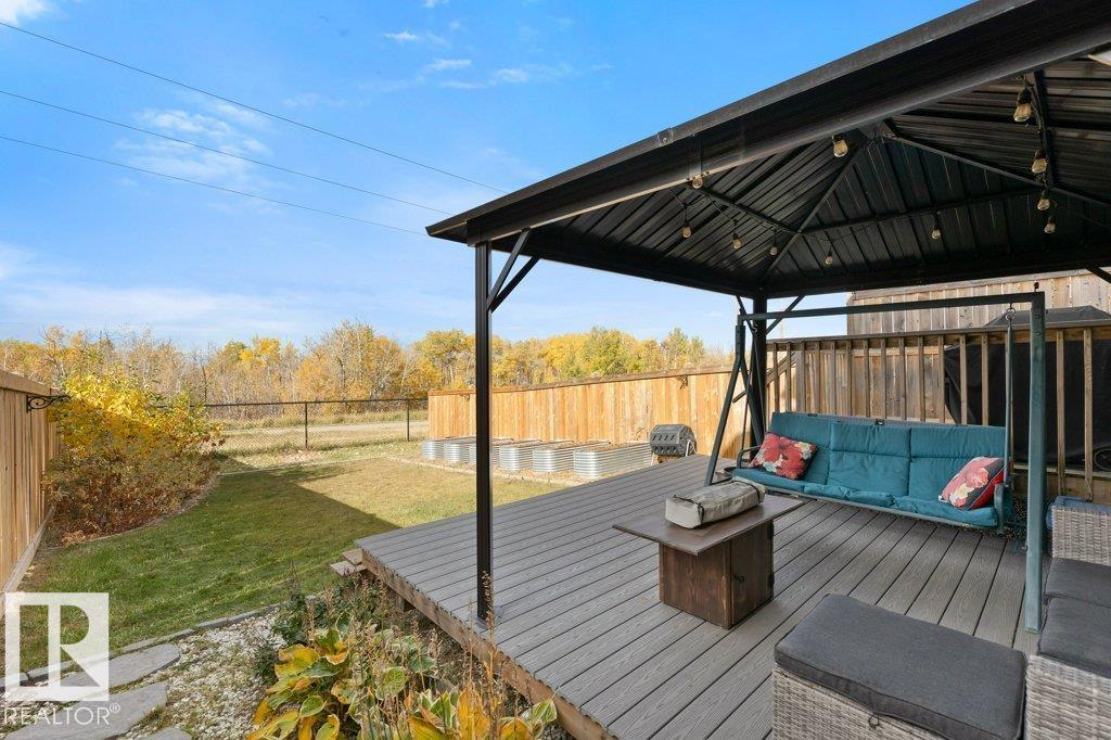 This spacious and beautifully maintained Half Duplex with a Fully Finished Basement offers 2,220 sq ft of total living space, backing onto serene green space and a walking trail! Featuring 4 bedrooms and 3.5 bathrooms, this home includes a cozy den and convenient upstairs laundry. The stylish kitchen with quartz countertops, rich dark cabinetry, and a functional eat-up island is perfect for entertaining. Enjoy year-round comfort with central A/C and the convenience of an attached double garage. The basement living space offers a bedroom, 4-pc bathroom, rec room, office and storage, while the rear deck is ideal for relaxing outdoors and the raised garden beds provide the perfect space to grow your own fresh vegetables. Located near the Anthony Henday, St. Albert, and surrounded by tree-lined streets, scenic 2 km of walking paths, and a pond—this home truly has it all!