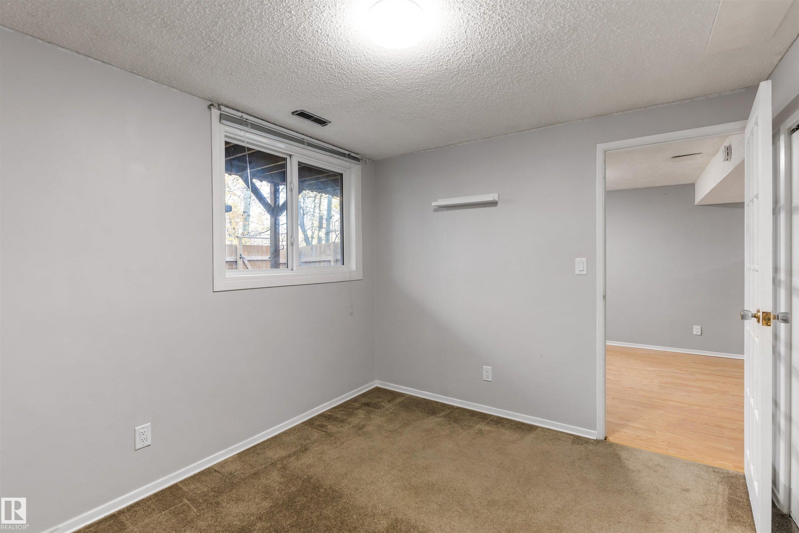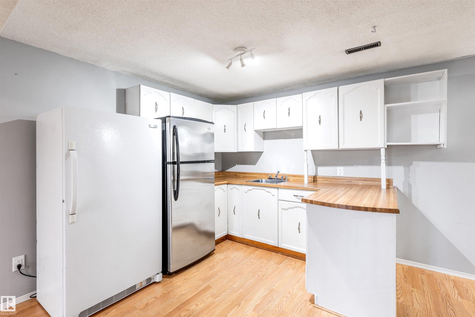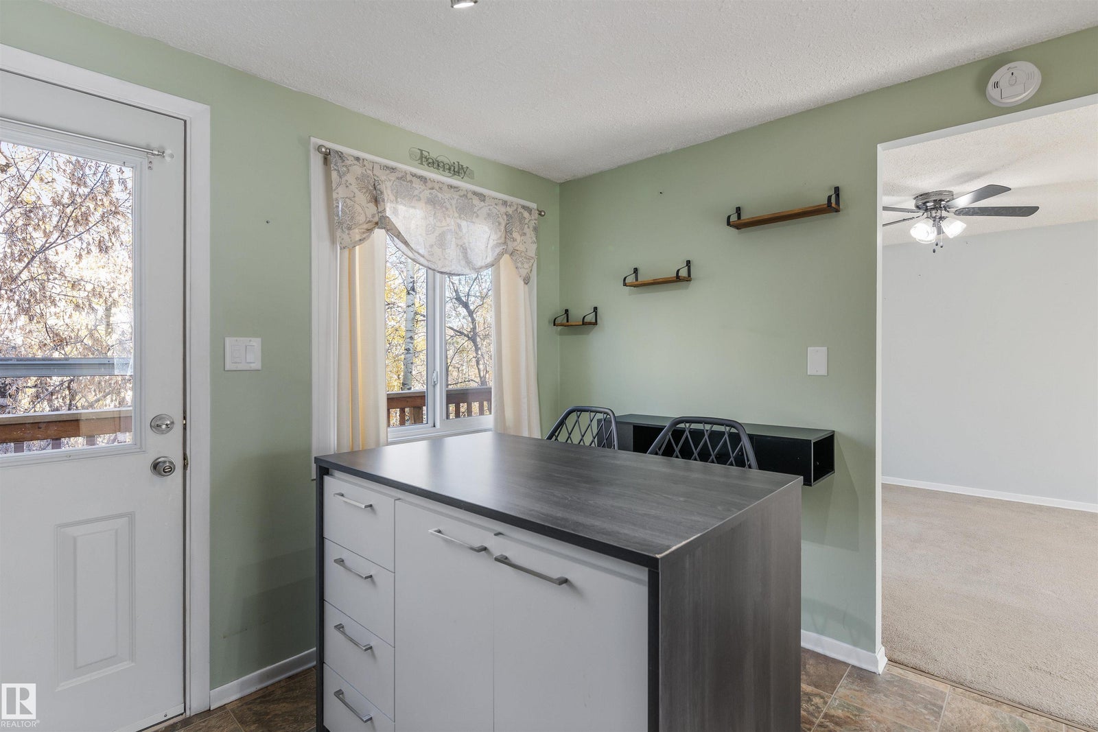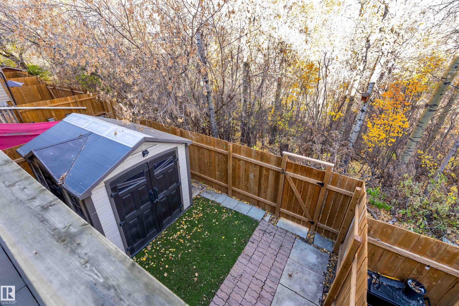 Sensational location on the RAVINE! Welcome to the FULLY FINISHED towhome featuring FOUR bedrooms, 2.5 baths and a WALKOUT BASEMENT. This well maintained unit has a large front living room with electric fireplace, spacious dining nook, kitchen with updated ISLAND, wall PANTRY and access to the back deck. Upstairs there are three large bedrooms and main 4pce bathroom. The 3rd bedroom has rough in plumbing for laundry. The fully finished walk out basement has a second kitchen, full 5pce bathroom, family room and 4th bedroom. There is access to the PRIVATE, low maintenance backyard with artificial grass, patio, large shed and access to the RAVINE. New HWT (2023), washer and dryer (2024), Fridge (2023) and stove (2022). Well run, pet freindly complex with low condo fees of $435.