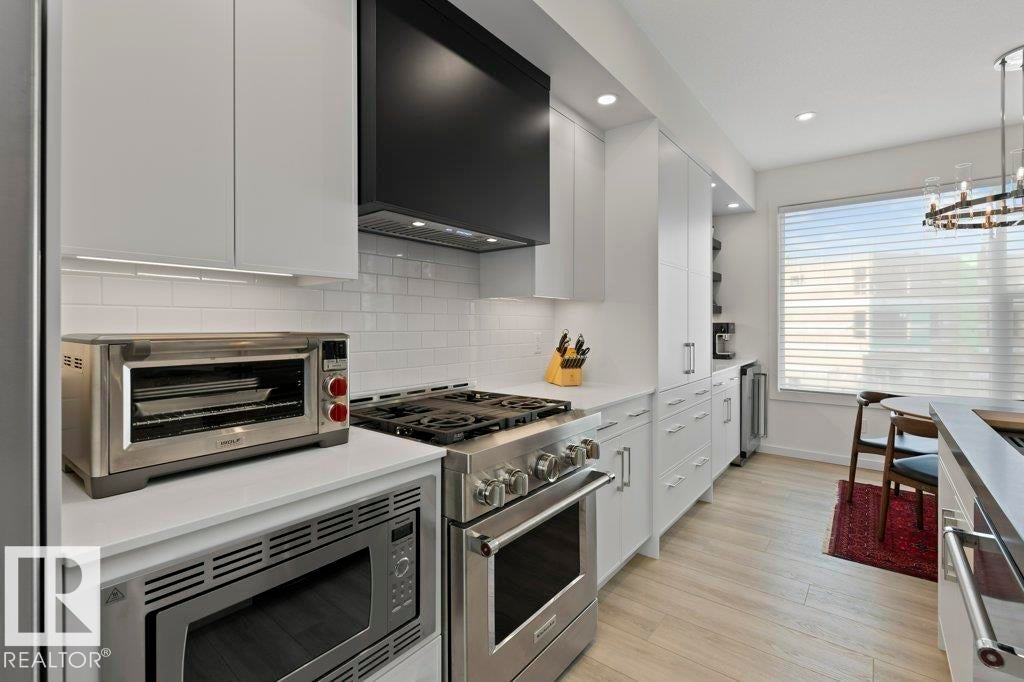 Welcome to Midtown by Averton, a luxurious townhome community like no other in St. Albert. With over $150,000 in UPGRADES, ROOF TOP PATIO & the best views in the complex this gorgeous 3-storey home is BETTER THAN NEW. Featuring 2 bedrooms both w/luxurious ensuites & custom closets, chef inspired kitchen and elegant dining area. Upgrades include a custom kitchen w/extra cabinet storage, floating shelves, Professional Series Kitchen Aid appliance package, bar fridge, gas stove, luxury vinyl plank flooring, whole house soft water system, Air Conditioning, charcoal & UV Light Air Filtration, exquisite imported light fixtures, Kohler intelligence toilet, Kohler sinks & hand towel bars plus Hunter Douglas Silhouette blinds. Top it off with a completely finished double attached garage w/ POLYASPARTIC COATED FLOOR & TESLA EV CHARGING UNIT. Enjoy a luxurious, low maintenance lifestyle like no other. Say goodbye to shoveling snow, cutting grass & building maintenance. But don't wait, this home will not last!