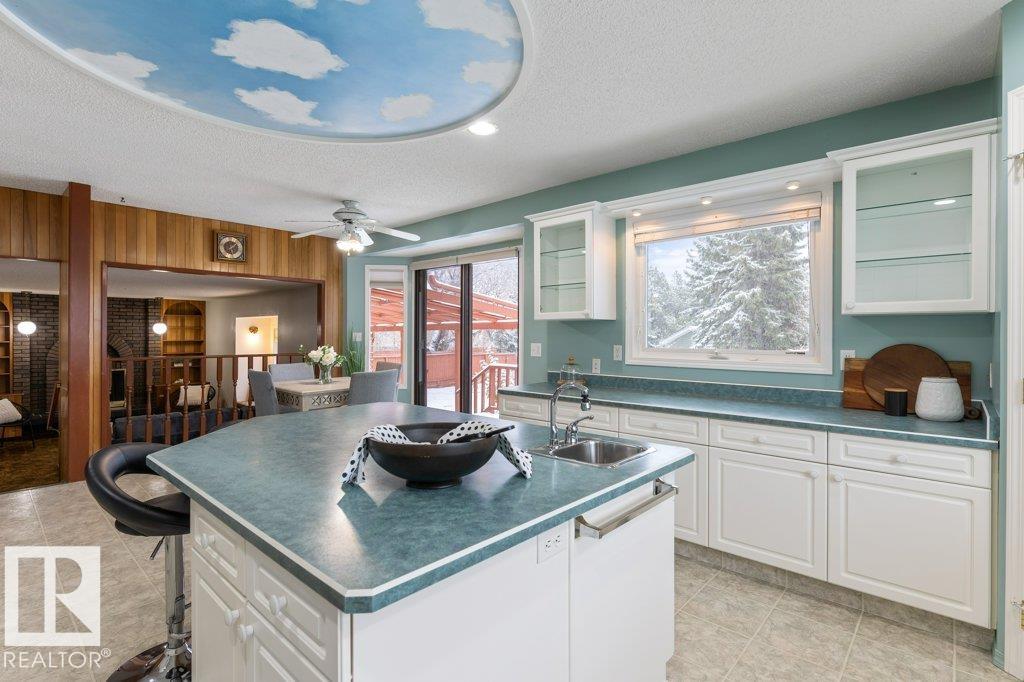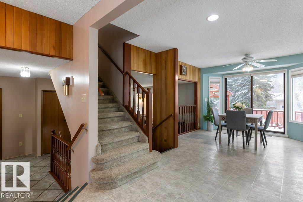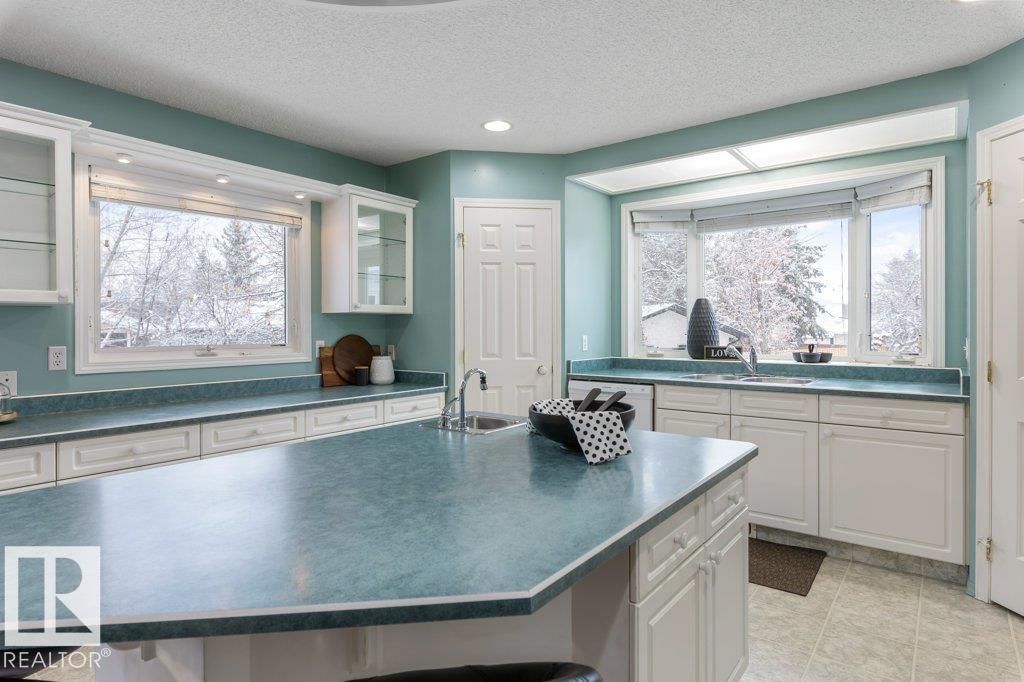 Welcome to this beautifully maintained, original-owner 4-level split, offering over 2,650 sq. ft. of total living space on a massive 10,376 sq. ft. lot! The bright kitchen offers ample white cabinetry, a large eat-up island with prep sink, and a sunny dining nook overlooking the cozy family room with a charming brick fireplace. With 5 spacious bedrooms, this home is perfect for growing families or anyone seeking flexible spaces to live, work, and relax. The primary suite features a private 3-piece ensuite, while the thoughtful multi-level layout provides great separation for multi-generational living, home offices, or teen retreats. Enjoy the light-filled living room, generous storage throughout, and a fully insulated, drywalled double garage. The southeast-facing backyard fills the home with natural light and offers exceptional outdoor living. Ideally located near WEM, Misericordia Hospital, schools, parks, and transit—this home is truly an incredible value!