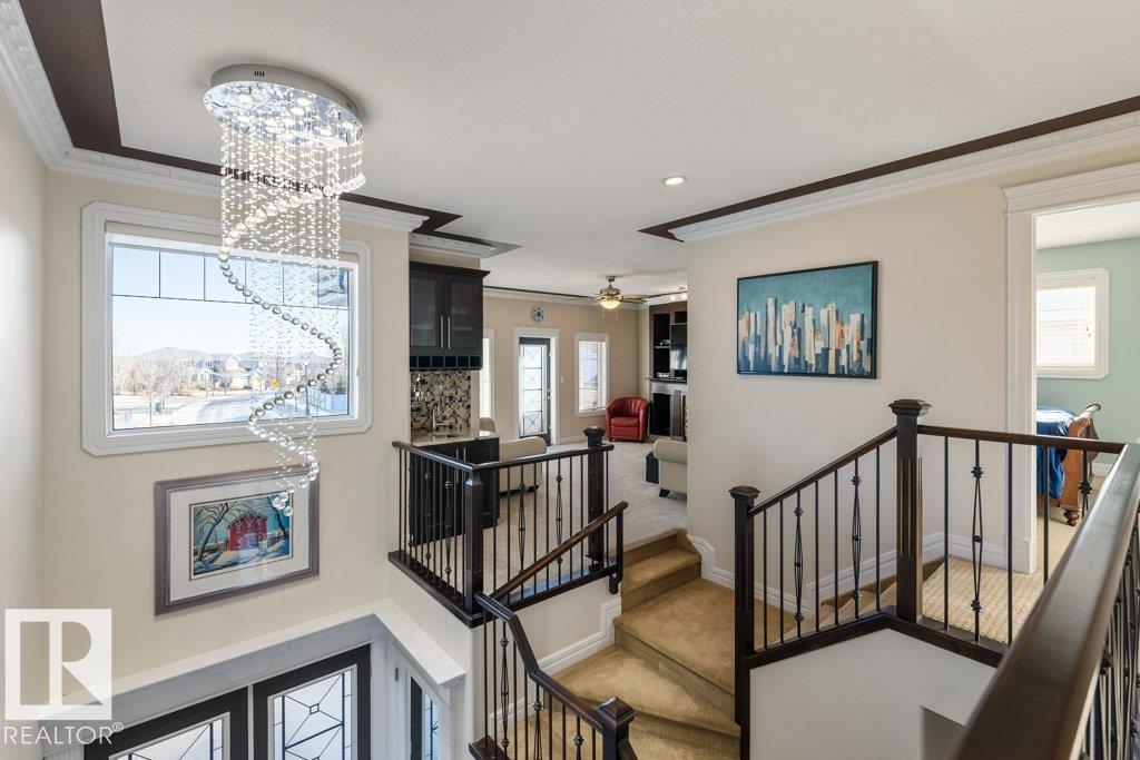 Prepare to be impressed with this beautifully developed luxury 2-storey home in sought-after LACOMBE PARK ESTATES. Step into a stunning 2 storey foyer leading to a FRONT DEN w/custom trim. The kitchen is a chef’s dream, featuring GRANITE counters, FULL HEIGHT cabinetry, ss appliances, a large eat-up ISLAND & a WALK THROUGH PANTRY connecting to the spacious laundry & mud room. The open living room with gas fireplace & the adjacent formal dining room with coffered ceiling create elegant spaces for entertaining. Upstairs, the primary suite offers HIS AND HER WALK IN CLOSETS & a spa-inspired ensuite with double sinks & a jetted tub. 3 additional bedrooms, a 4-piece bath, & a bonus room with a SECOND FIREPLACE, WET BAR, and access to a COVERED UPPER DECK complete the level. The FULLY FINISHED basement has a large rec room, impressive bar, guest bedroom, & 3-piece bath. Outside, the private yard with composite decking and mature trees provides a serene retreat. Fresh paint, new HWT & Permanent LED Lighting!