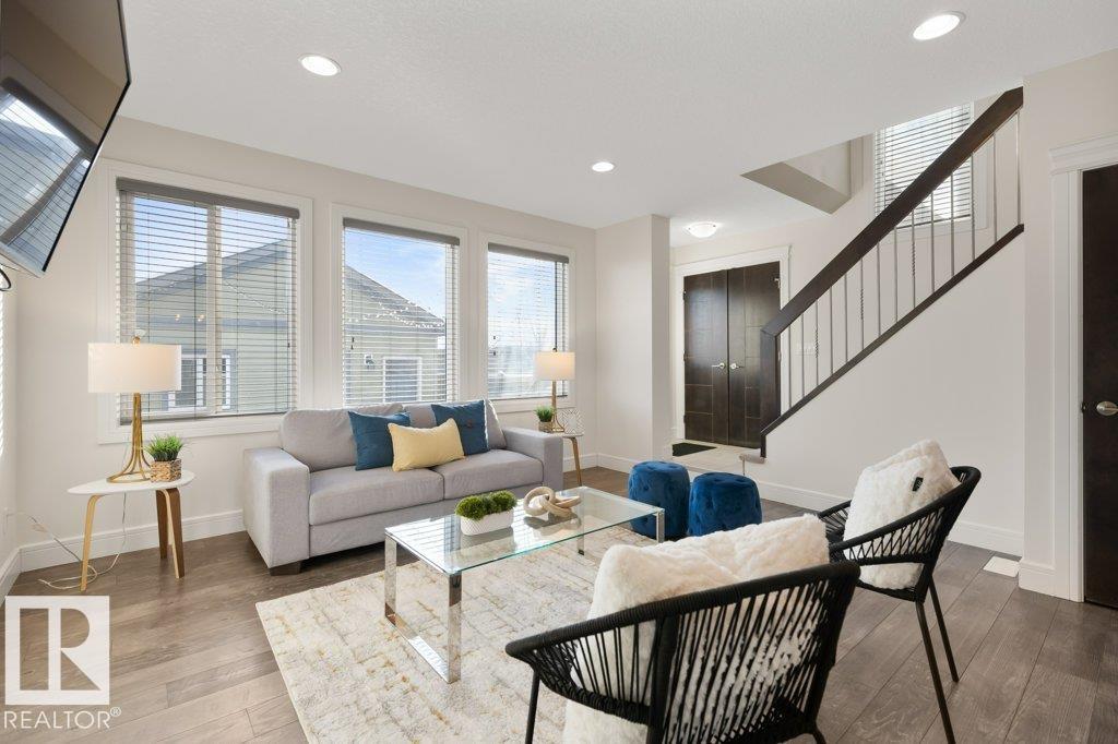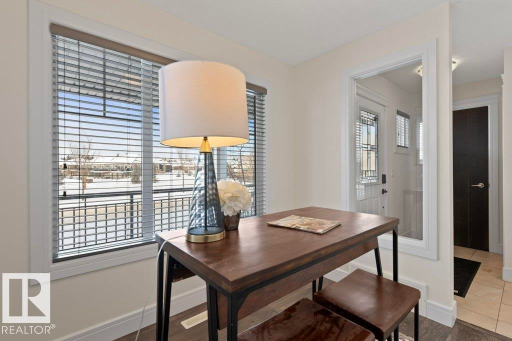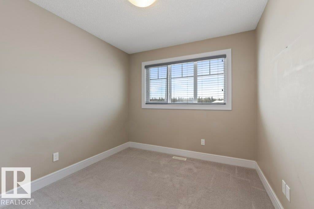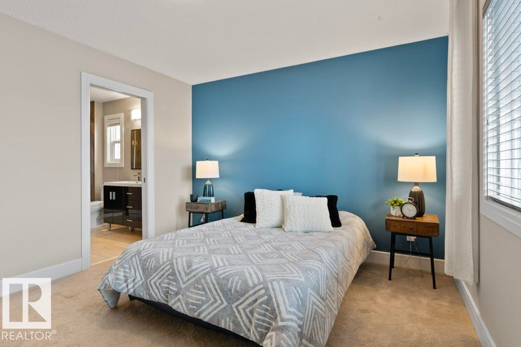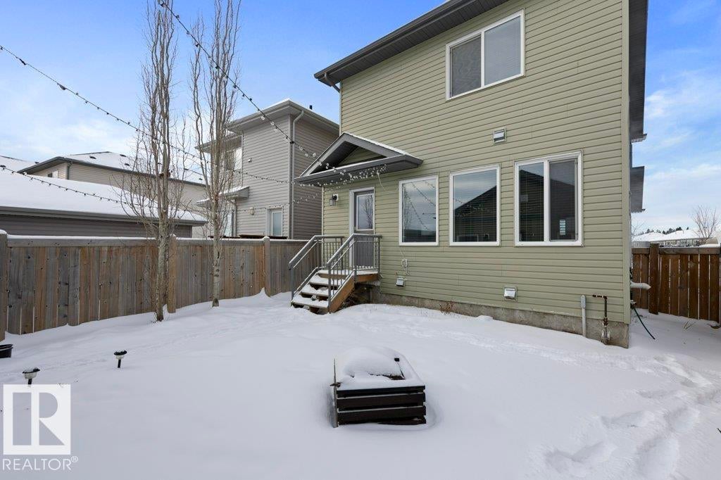 Situated across the street from a GREENSPACE with a POND and walking trails, welcome to this over 1500sqft home loaded with windows and natural light! The main floor is extremely functional with a front den, high end kitchen with full height cabinetry, QUARTZ countertops, stainless steel appliances and trendy backsplash. Just off the kitchen is a large dining nook and access to the living room which overlooks the fully landscaped yard. Upstairs there are 3 spacious bedrooms, SECOND FLOOR LAUNDRY and a main 4 piece bathroom. The primary bedroom has a 5 piece ensuite with TWO SINKS, an oversized shower, separate soaker tub and a walk in closet. There is a DOUBLE DETACHED garage and cute front veranda overlooking the park. This home is ready for immediate possession!