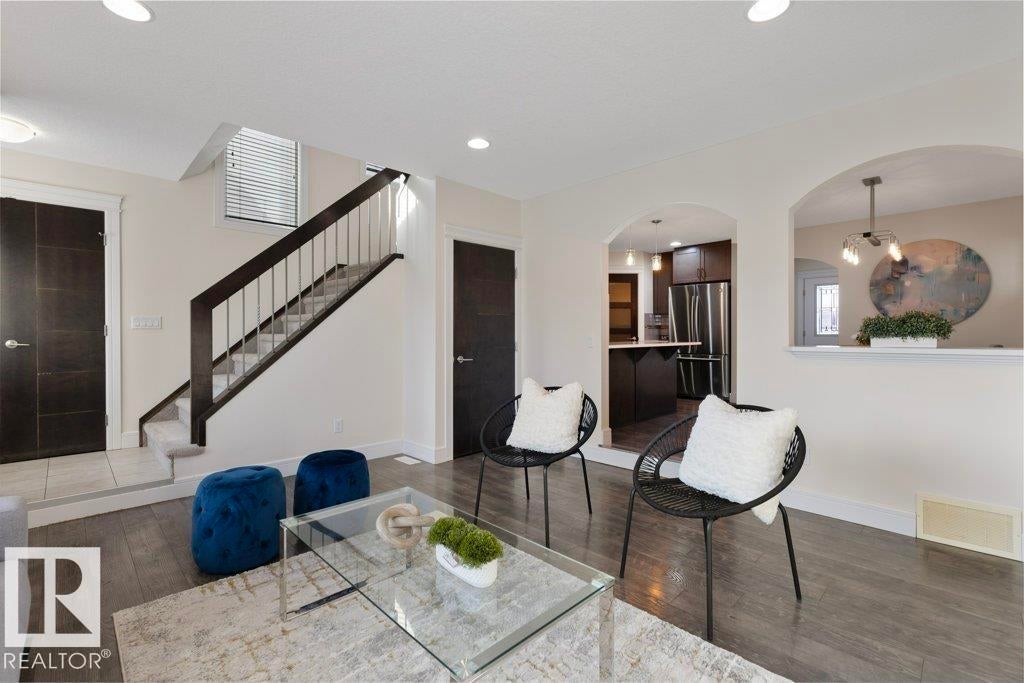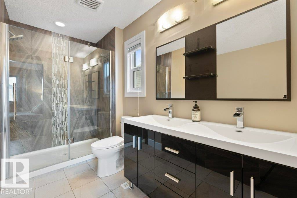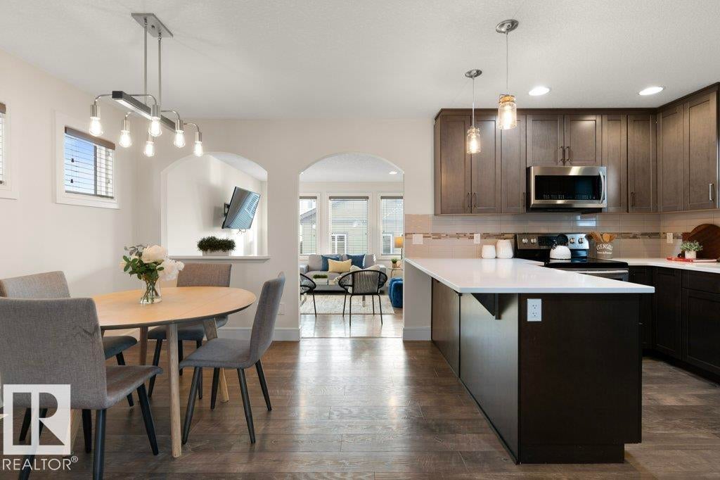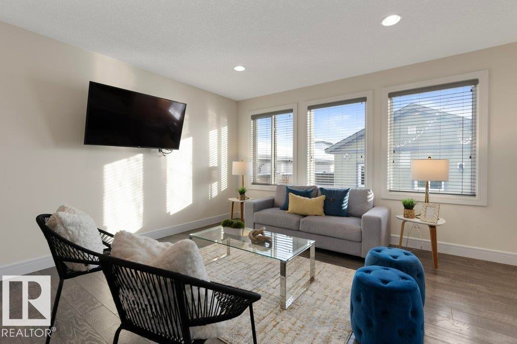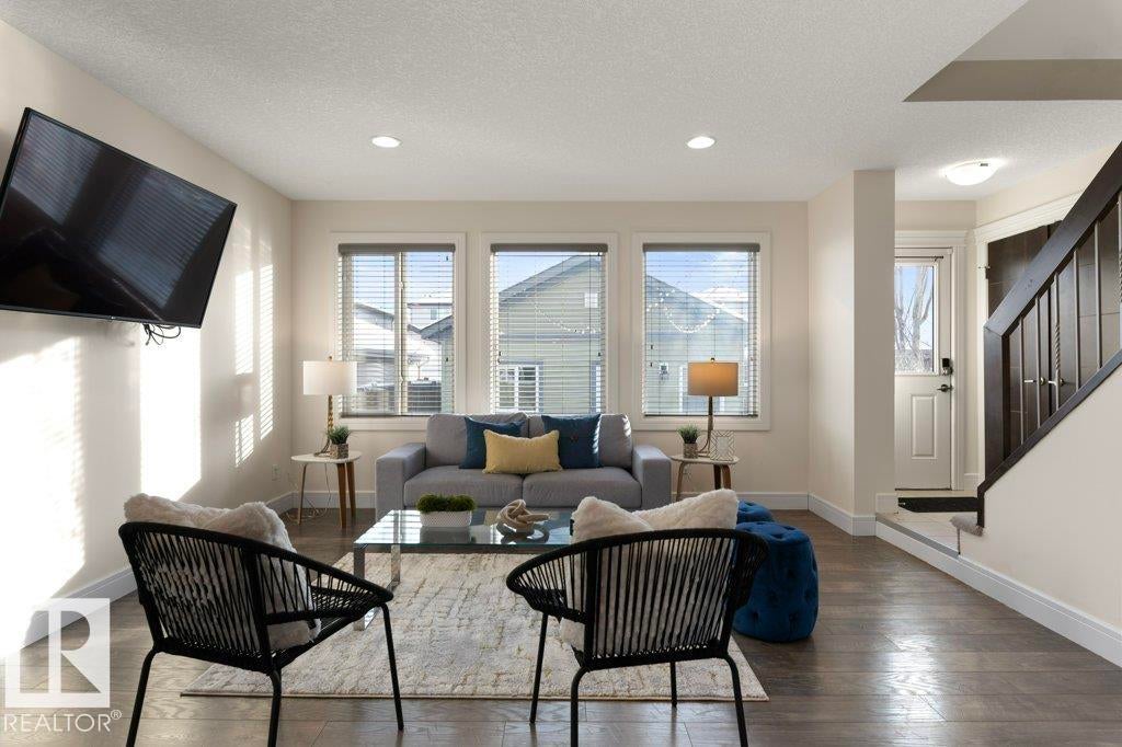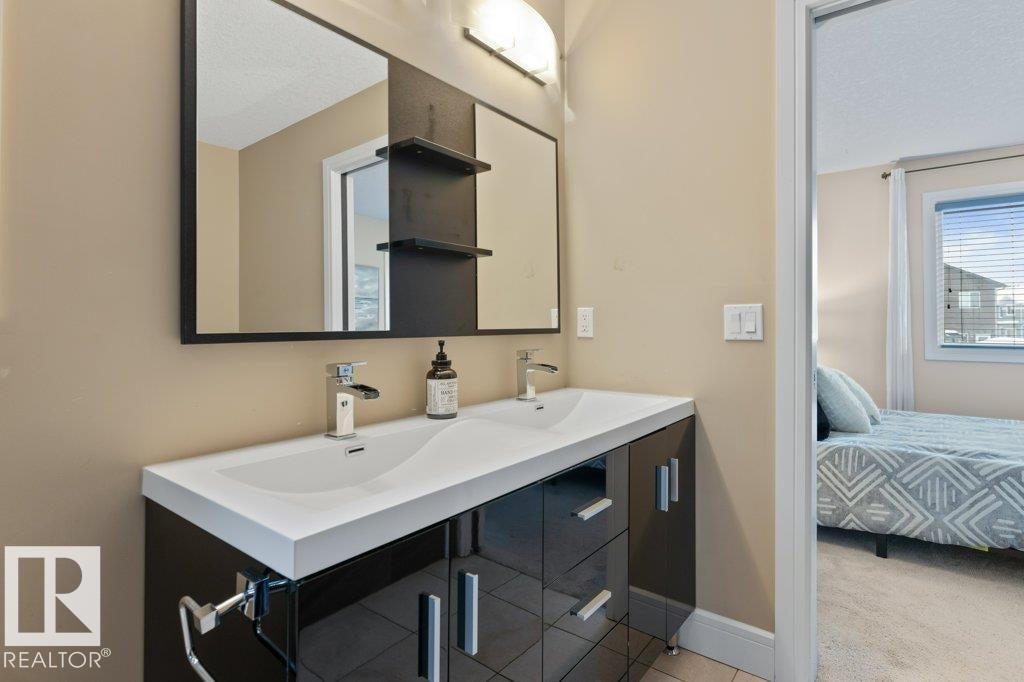 Situated across the street from a GREENSPACE with a POND and walking trails, welcome to this over 1500sqft home loaded with windows and natural light! The main floor is extremely functional with a front den, high end kitchen with full height cabinetry, QUARTZ countertops, stainless steel appliances and trendy backsplash. Just off the kitchen is a large dining nook and access to the living room which overlooks the fully landscaped yard. Upstairs there are 3 spacious bedrooms, SECOND FLOOR LAUNDRY and a main 4 piece bathroom. The primary bedroom has a 5 piece ensuite with TWO SINKS, an oversized shower, separate soaker tub and a walk in closet. There is a DOUBLE DETACHED garage and cute front veranda overlooking the park. This home is ready for immediate possession!