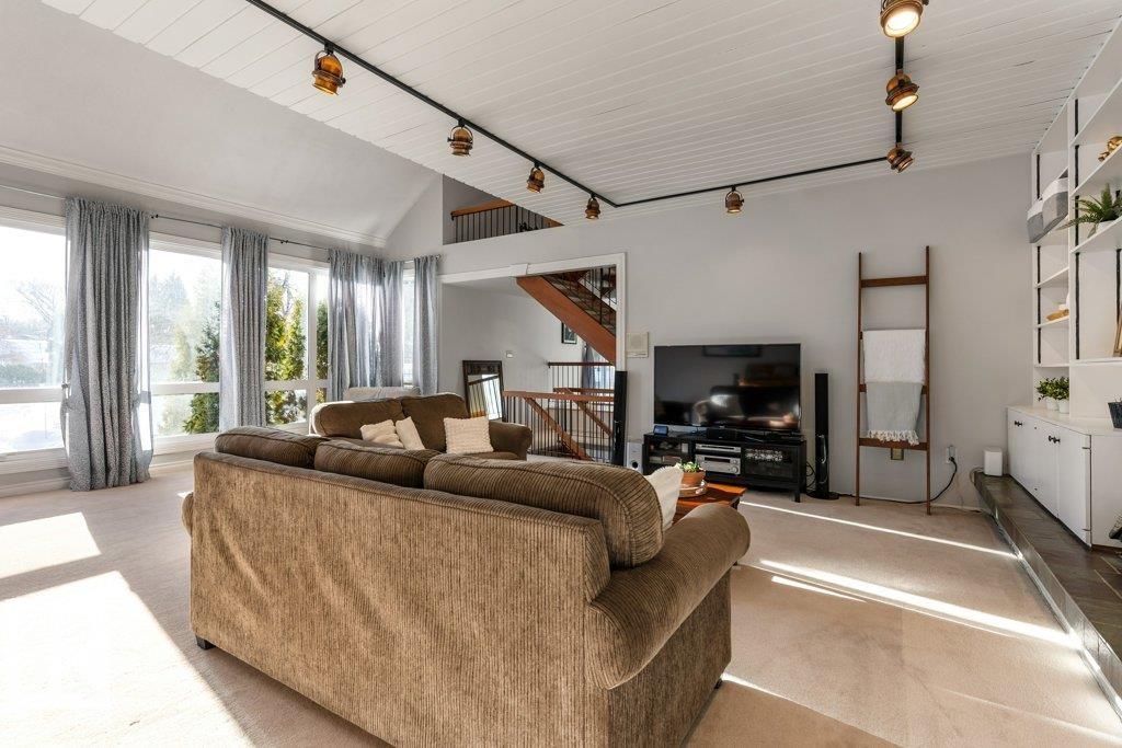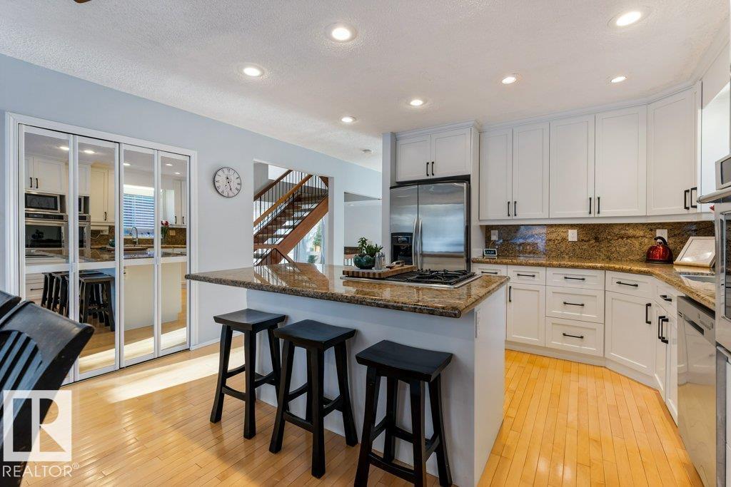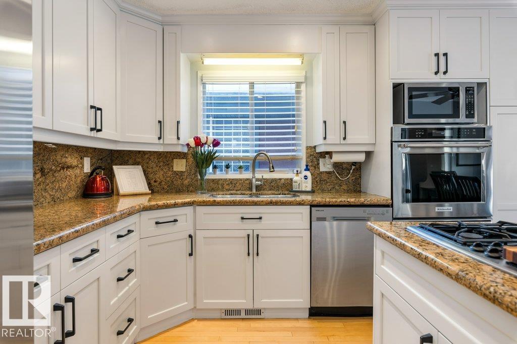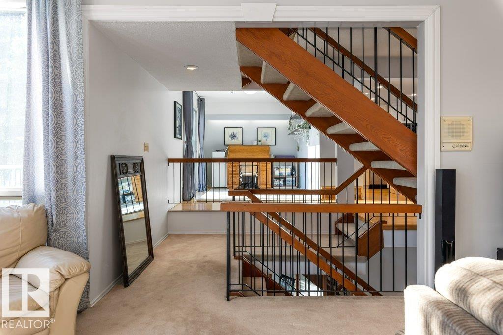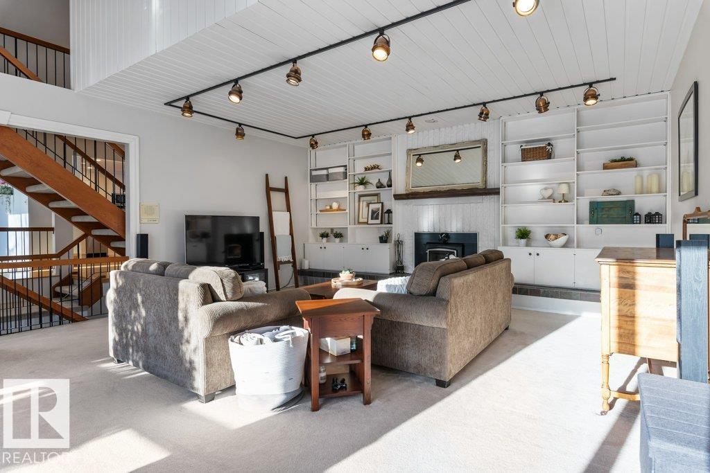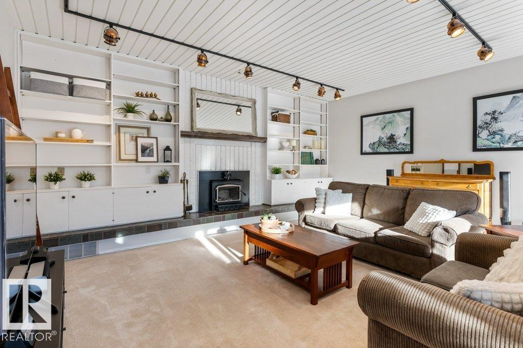 Full of charm & character! This almost 2300sqft home is a true gem. Enter the spacious front entry with access to the OVERSIZED Double Attached Garage. Just off the entrance is a large family room with screen & projector, perfect for family movie nights! The main level has an amazing living room with soaring VAULTED CEILINGS, cozy fireplace, custom built-ins & is full of natural light. There is a front flex room, dining room, office or sitting room with patio doors to a front deck, updated WHITE kitchen with GRANITE countertops, backsplash & a large dining nook. Off the kitchen is a MAIN FLOOR LAUNDRY ROOM & renovated 1/2 bath. Upstairs are three large bedrooms. The two secondary bedrooms have VAULTED ceilings & one has an extra den, perfect crafting, gaming or quiet work spot! The primary bedroom has 3pce ensuite & double closets, Completing the second floor is a 5pce main bathroom. Situated on a large, beautifully landscaped lot, steps to parks, schools & Grosvenor pool. CENTRAL A/C on the upper level!