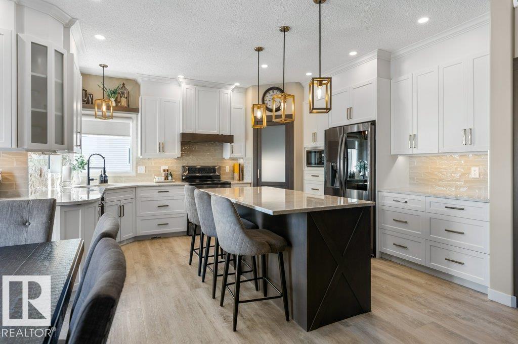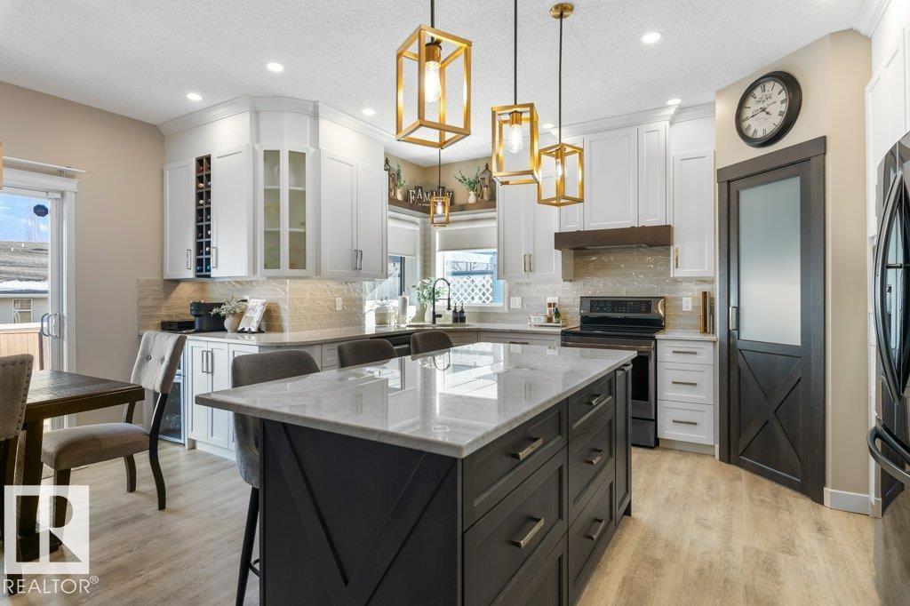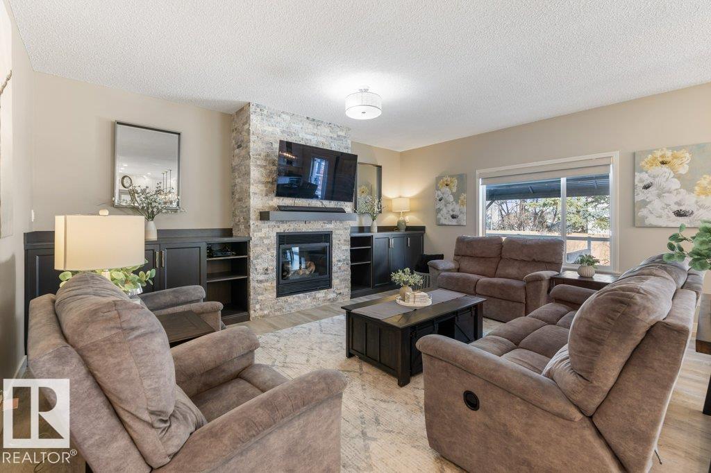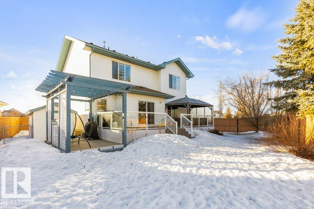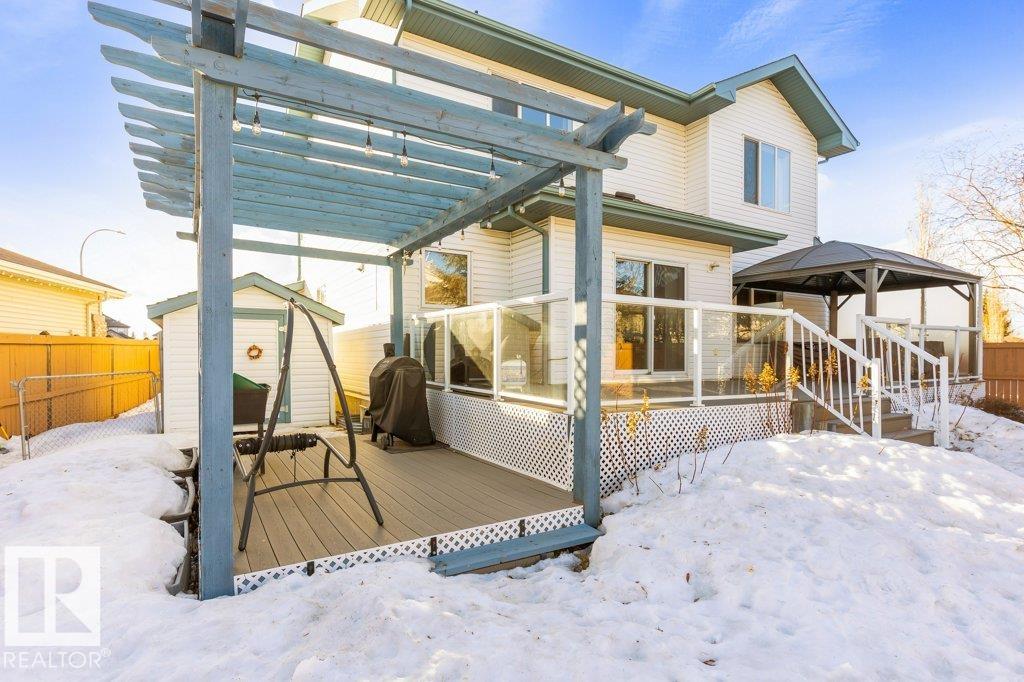 Situated on a quiet cul de sac, welcome to this beautifully RENOVATED 2488sqft home. The main floor features 9'ceilings and new VINYL PLANK flooring. With a functional layout offering space for everyone: there is a front main floor den/office, inviting great room with a rock gas FIREPLACE with custom builts in, spacious dining area, and a new DREAM KITCHEN with two toned cabinets, QUARTZ countertops, abundance of storage and WALK THRU PANTRY with COFFEE STATION. Upstairs has 3 large bedrooms, BONUS ROOM with VAULTED CEILINGS and a RENOVATED main bathroom with custom shower. The primary bedroom has a 4pce ensuite and walk in closet. The FULLY FINISHED basement features a family room with bar area, 4th bedroom, den (could be 5th bedroom with addition of closet) and 4pce bathroom. Recent upgrades include: Shingles (2016), HWT Tank (2021), Furnace (2024), CENTRAL A/C. Large PIE SHAPED lot with new COMPOSITE DECK, pergola and gazebo.