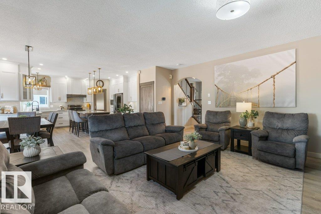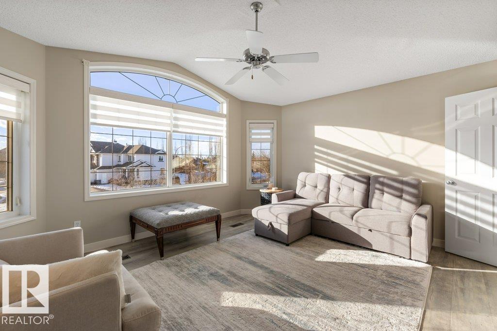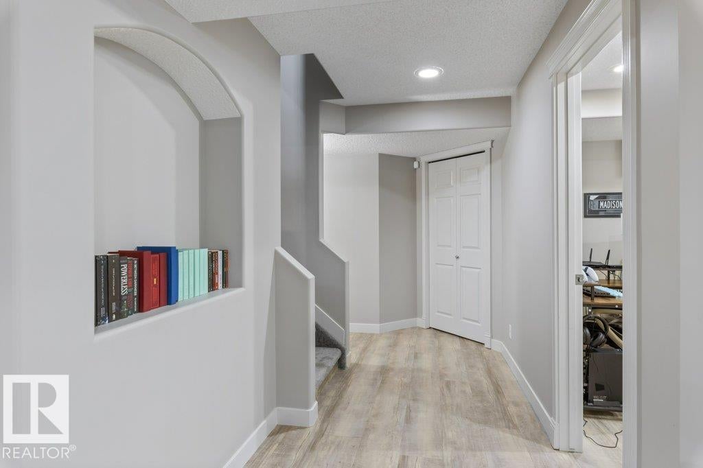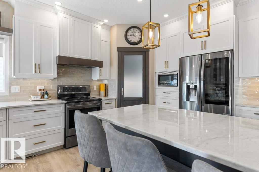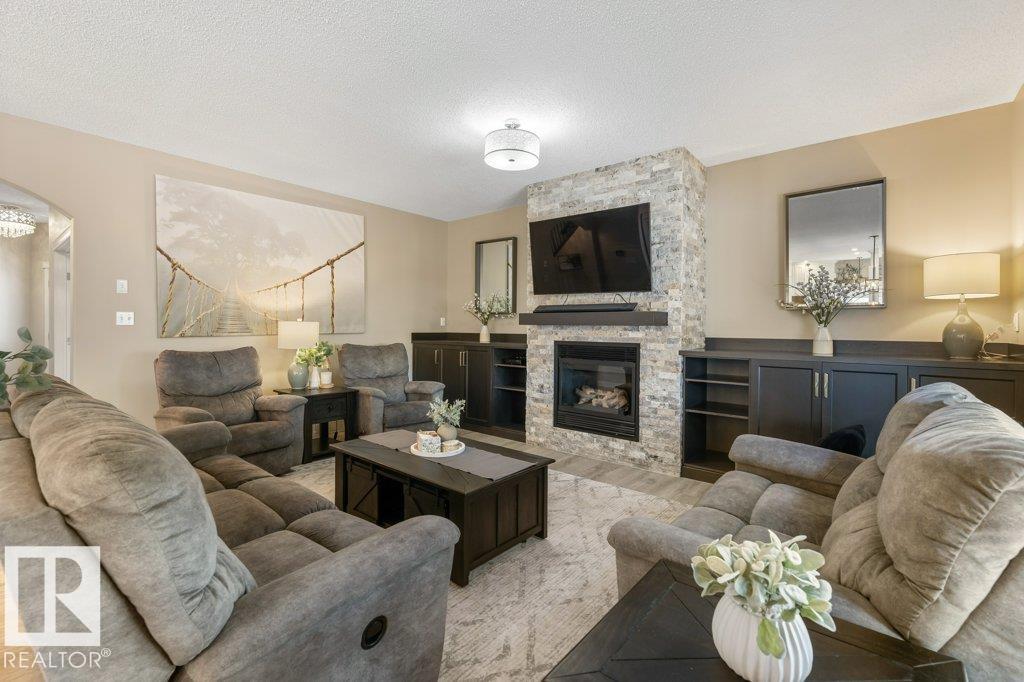 Situated on a quiet cul de sac, welcome to this beautifully RENOVATED 2488sqft home. The main floor features 9'ceilings and new VINYL PLANK flooring. With a functional layout offering space for everyone: there is a front main floor den/office, inviting great room with a rock gas FIREPLACE with custom builts in, spacious dining area, and a new DREAM KITCHEN with two toned cabinets, QUARTZ countertops, abundance of storage and WALK THRU PANTRY with COFFEE STATION. Upstairs has 3 large bedrooms, BONUS ROOM with VAULTED CEILINGS and a RENOVATED main bathroom with custom shower. The primary bedroom has a 4pce ensuite and walk in closet. The FULLY FINISHED basement features a family room with bar area, 4th bedroom, den (could be 5th bedroom with addition of closet) and 4pce bathroom. Recent upgrades include: Shingles (2016), HWT Tank (2021), Furnace (2024), CENTRAL A/C. Large PIE SHAPED lot with new COMPOSITE DECK, pergola and gazebo.